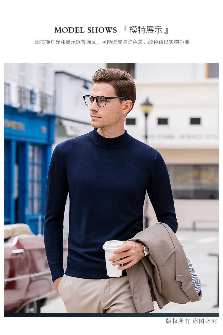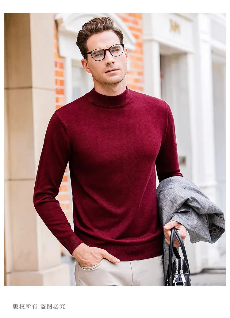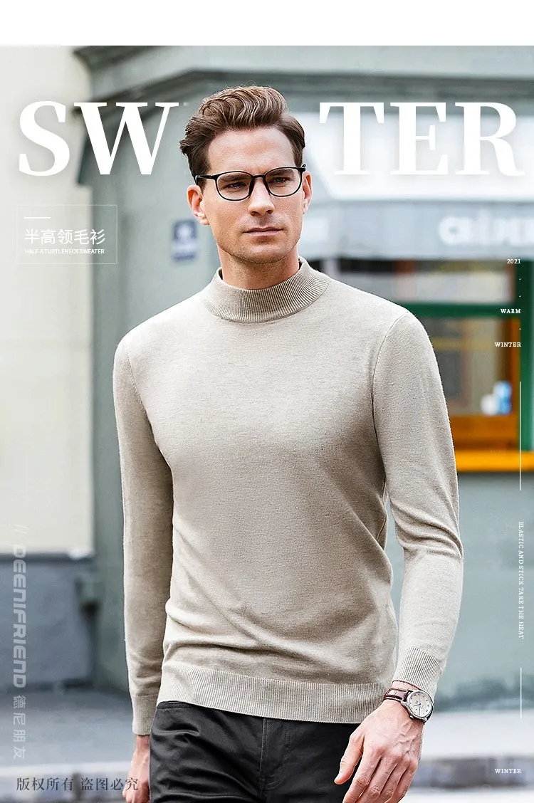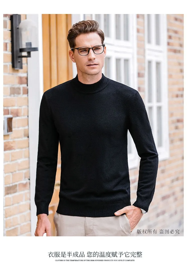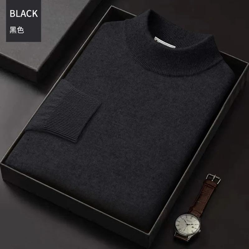 New 2025 Men'S Mock Collar 100% Pure Woolen Sweater Tops Autumn Winter Cashmere Sweater Men Pullover Knitted Warm Sweater Male