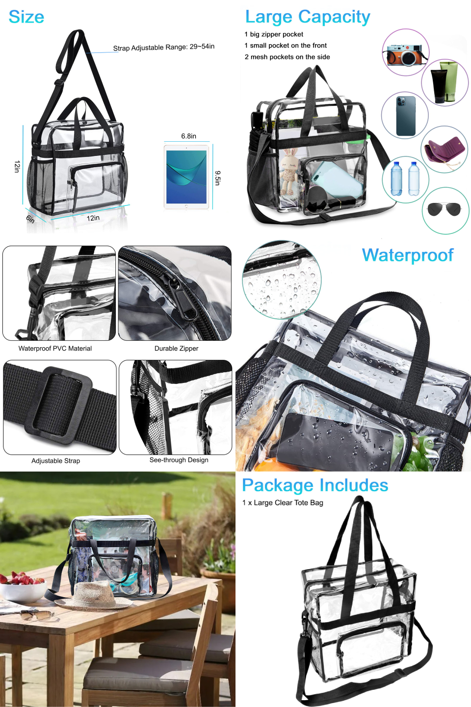 - ✨Large capacity: With dimensions of 12 x 12 x 6 inches (L x H x W), this clear tote bag is spacious enough to hold all your essentials, including suntan lotion, wallet, keys, cell phone, sunglasses, card, cash, and more.